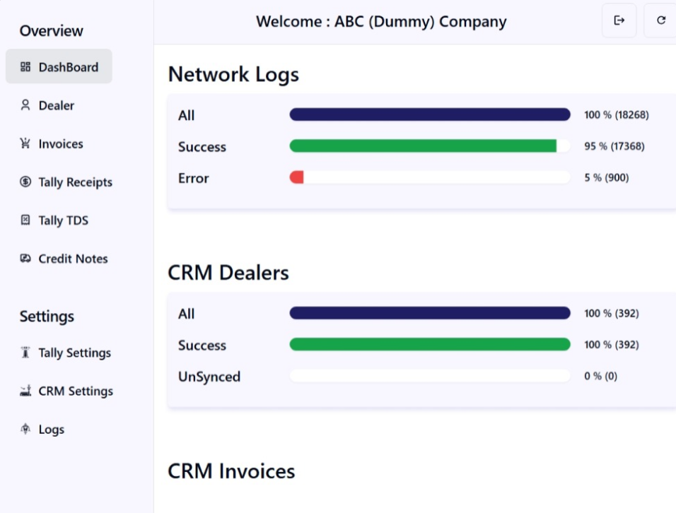 The system reduces manual work, keeps financial data consistent across CRM and Tally, and provides a central dashboard for monitoring sync status, logs, and system health.
