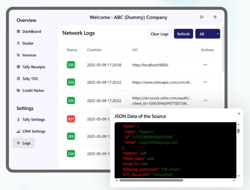 The XA Group Tally Connector is a React + Tauri based desktop application that integrates Zoho CRM, ERP, and Tally to enable automated synchronization of critical business data such as: